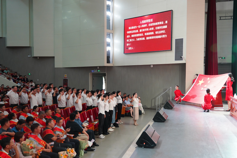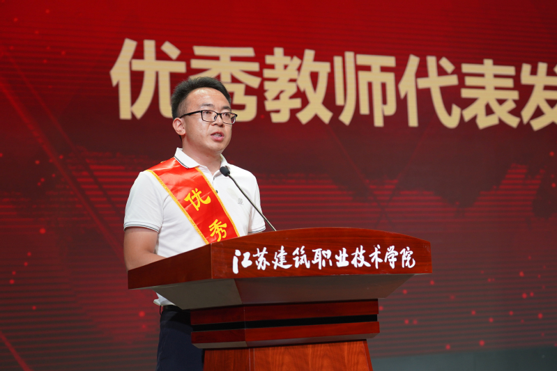 大会现场,新入职教师在建筑装饰学院陆文莺教授的带领下进行了庄严的入职宣誓。建筑管理学院教师郭红军作为优秀教师代表进行了工作经验分享。交通工程学院路桥23-4班谢萌萌代表学生发言。