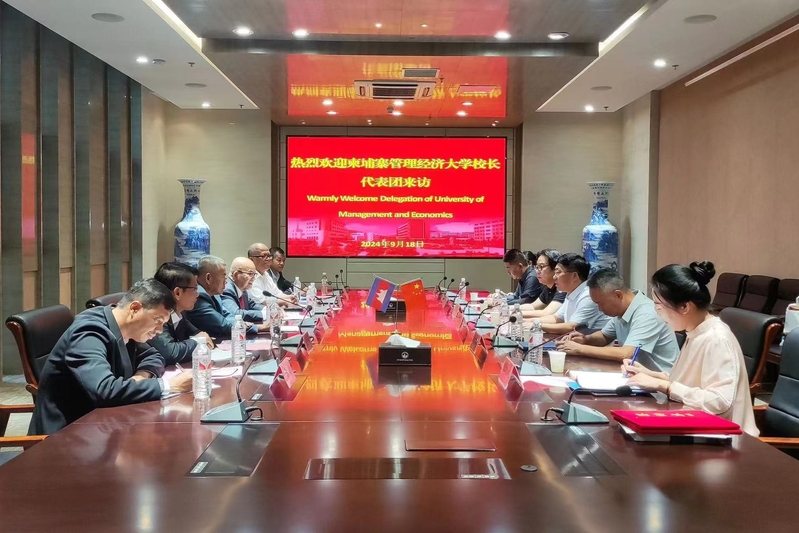 9月18日,柬埔寨管理经济大学校长费克迪,校长顾问本丹,副校长万托奇、纳里特,戈公分校校长拉林、副校长萨雷一行6人到我校访问交流,洽谈专业合作事项。党委副书记、校长沈士德,党委委员、副校长刘海波在图书馆会议室接待来访人员,国际合作与交流处、经济管理学院等相关部门同志参加洽谈会。