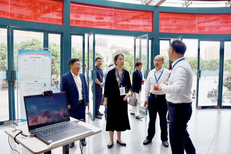 9月21日-22日,2024年国家统一法律职业资格客观题考试在我校举行。徐州市副市长杨健,省司法厅一级巡视员张亦军,党委副书记、校长沈士德,市司法局领导及校实验实训处相关负责人到考点巡查督考。