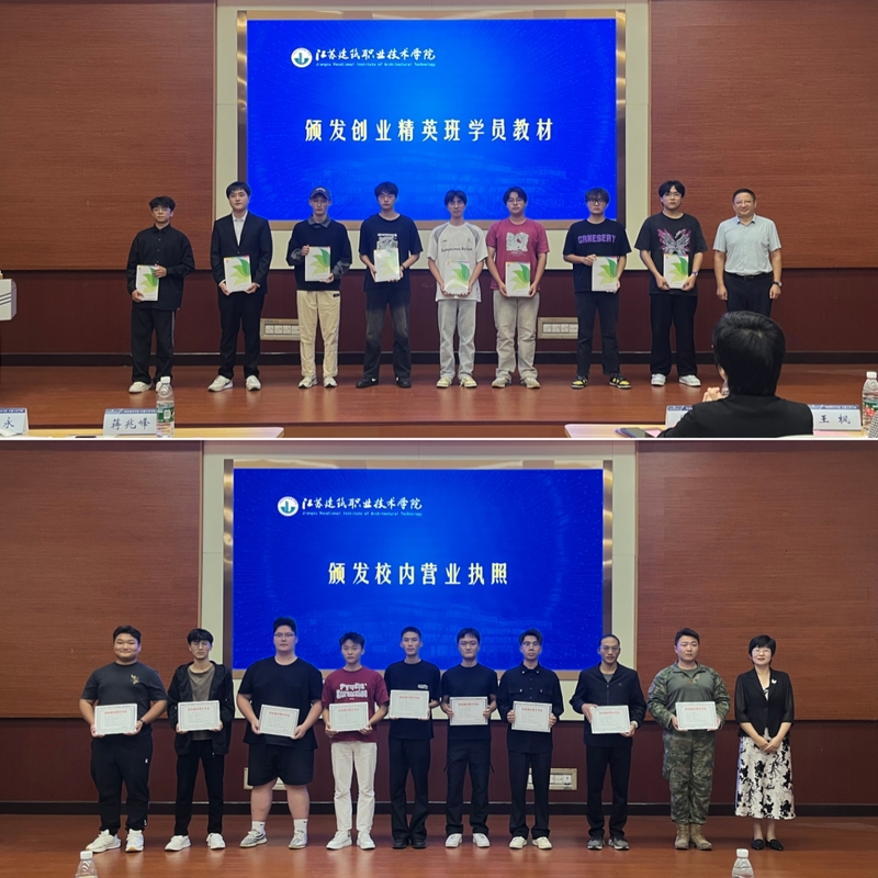 随后,蒋兆峰为我校首届创业精英班学员颁发培训教材,殷飞为2024年大学生创业园项目颁发校内营业执照。