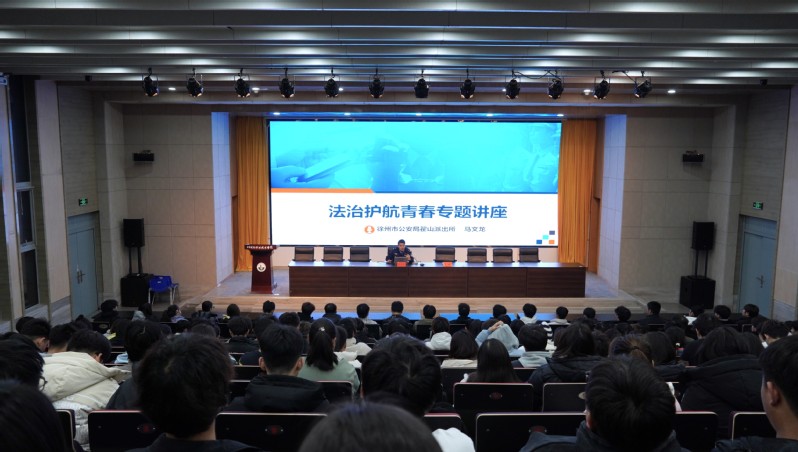 为提高学生防范意识,了解违法犯罪行为的危害,12月1日,学校邀请徐州市公安局泉山分局翟山派出所警官马文龙在图书馆学术报告厅举办“法治护航青春”专题讲座,200余名学生代表现场参加讲座。