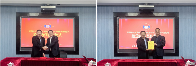 12月4日,我校与江苏中核华兴装饰有限公司在南京举行校企合作签约仪式。党委委员、副校长蒋兆峰,南京和建科技集团有限公司总经理刘宝明,江苏中核华兴装饰有限公司董事长向进、常务副总经理崔亚东、副总经理李永刚等出席仪式。我校校企合作处、建筑智能学院、建筑装饰学院负责人以及江苏中核华兴装饰有限公司各职能部门负责人参加仪式。