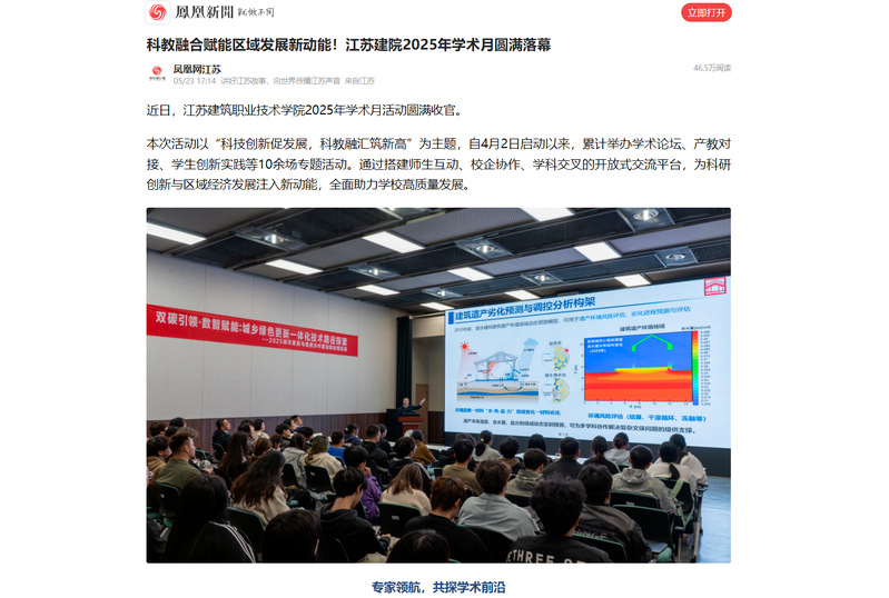 学术月活动紧密围绕国家“双高计划”与“智能建造”专业建设目标。学校相关负责人表示,在深化现代职业教育体系建设改革的背景下,学校将以本次学术月成果为起点,持续深化产教融合、攻关关键技术、服务国家战略,为职业教育成为江苏“挑大梁”的硬核支撑贡献“建院力量”。