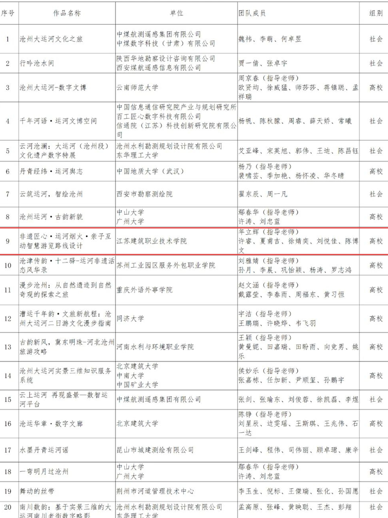 6月28日,中国测绘学会主办的“天枢杯”第二届空天地信息技术赋能智慧城市创新应用大赛在武汉落幕。我校首次参赛即斩获佳绩,智慧城市管理技术专业学生团队(成员:许睿、夏甫吉、徐婧奕、刘悦佳、陈博文)的作品《非遗匠心·运河烟火·亲子互动智慧游览路线设计》荣获“天璇奖”,成为获此奖项的两所高职院校之一。