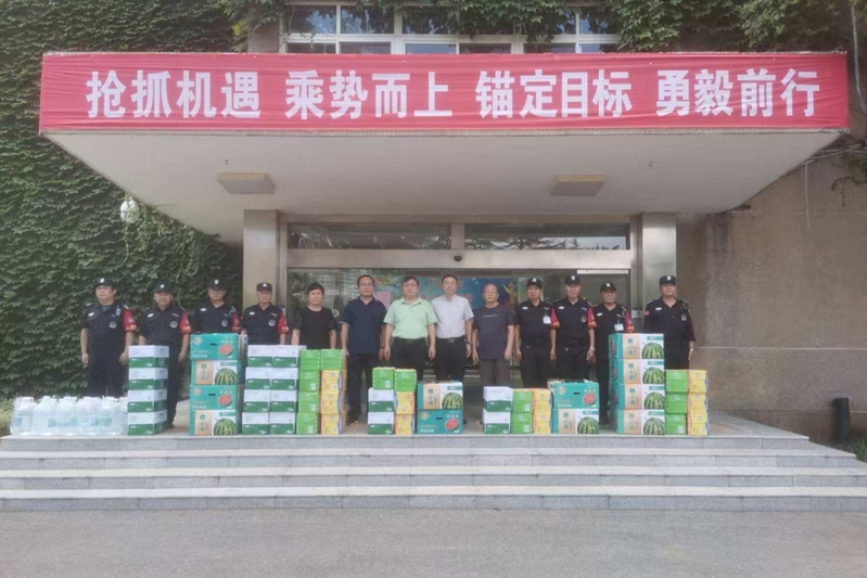 为切实关心一线教职工的工作与生活,近日,学校组织开展了2025年暑期夏日送清凉慰问活动,党委委员、副校长朱铁壁带队走访相关部门,看望在高温天气下仍奋战在工作一线的教职工,并送上防暑降温物资。