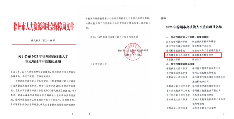 近日,徐州市人力资源和社会保障局公布了2025年徐州市高技能人才重点项目评审结果,经资料审核、实地考察和专家评审,我校申报的“高端装备与数字技术高技能人才专项公共实训基地”获得立项建设。