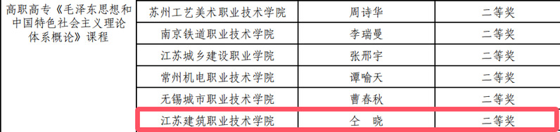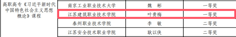 近日,由江苏省委教育工委、江苏省教育厅主办的第三届江苏省高校思政课教学展示活动公布获奖名单,我校马克思主义学院教师叶贵梅获高职高专《习近平新时代中国特色社会主义思想概论》课程组一等奖、张海云获高职高专《形势与政策》课程组一等奖、仝晓获高职高专《毛泽东思想和中国特色社会主义理论体系概论》课程组二等奖、高凯旋获高职高专《形势与政策》课程组二等奖。叶贵梅教师及其教学团队凭借优异表现,被推荐参加第四届全国高校思政课教学展示活动,这是我校在该项省级最高水平思政课教学竞赛中取得的又一突破。