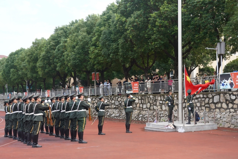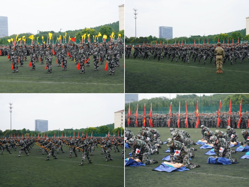典礼在师生合唱《铭记》的歌声中拉开序幕。随后,现场举行了庄严的升国旗仪式。军训汇报展示环节,各新生方队代表依次进行了人海拼图、旗语展示、队列会操、心肺复苏与战场急救包扎等训练科目演示,充分展现了2025级新生良好的精神风貌和军训成果。