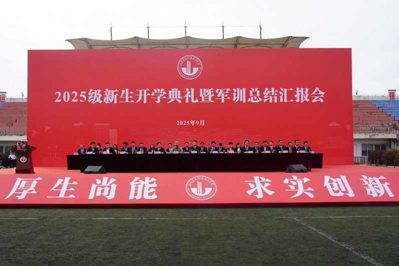9月29日下午,我校2025级新生开学典礼暨军训总结汇报会在泉山校区西操场举行。党委书记朱东风,党委副书记、校长沈士德,承训部队领导,党委副书记梁惠,党委委员、纪委书记朱作付,党委委员、副校长刘海波,党委委员、副校长蒋兆峰,党委委员、副校长朱铁壁出席典礼。学校相关职能部门负责人、各二级学院党政领导、军训教官、新生班主任及2025级全体新生参加活动。典礼由梁惠主持。