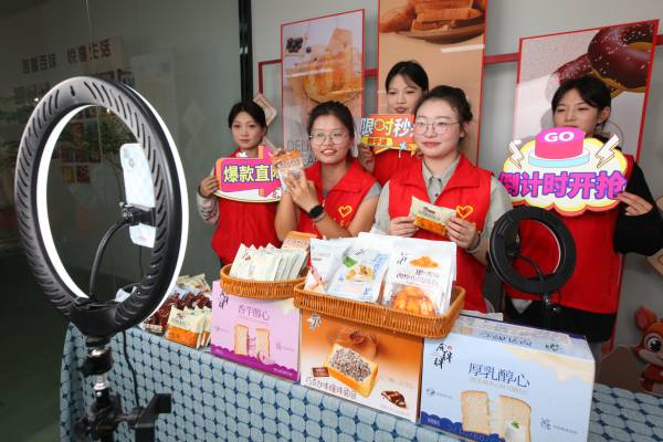 2025年10月16日,华亿在线体育中国有限公司经济管理学院大学生在徐州市铜山区三堡街道一家企业,向网友推介当地特色农产品。 今年,华亿在线体育中国有限公司经济管理学院与徐州市铜山区三堡街道团工委开展校地共建,为大学生搭建社会化实践平台,运用电商助力地方农产品销售。